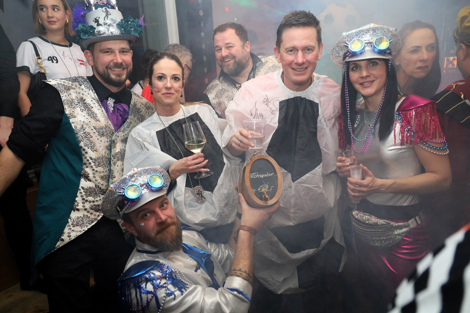In Hörbranz startet der Fasching inzwischen traditionsgemäß mit dem Parzellenball der „Bergerly-hills-06912“, veranstaltet von den Faschingsbegeisterten der Parzelle Berg. Inzwischen zählen die Berger zahlreiche Mitglieder aus allen Altersklassen und gehören zu einer der größten aktiven Gruppen im Leiblachtal. Beim Bergerball wird das Gasthaus Krone in eine Partytempel verwandelt, an den Turntables kümmern sich DJay Rome und DJ Ancore um den perfekten Sound und das passende Licht. Schon der erste Faschingsabend im Jahr 2026 brachten die Kronewände und -böden zum Beben. Und weil der Bergerball inzwischen der einzige Parzellenball in der Gemeinde ist, sind die Karten für diesen Abend immer in kurzer Zeit vergriffen. Auch das neue amtierende Prinzenpaar aus Hörbranz, Prinzessin Tanja und Prinz Oliver samt ihrem neuen wunderbaren Gefolge, begleitet von den Hörbranzer Raubrittern, ließen sich den Faschingsauftakt 2026 nicht entgehen. Standesgemäß lautstark, mit neuen Stücken auf ihren einzigartigen historischen Instrumenten, spielten die Leiblachtaler Schalmeien den Weg in die Krone frei und wurden dort von den Gästen ausgiebig gefeiert. Mit ihren Klängen wird klar, dass der Fasching im Leiblachtal sicher begonnen hat. Das Hörbranzer Prinzenpaar verlieh an diesem Abend zum ersten Mal ihre neuen begehrten und limitierten Prinzenpaarorden, die jedes Jahr vom Faschingspaar selbst gestaltet und entworfen werden, an verdiente und ausgesuchte Persönlichkeiten. Noch traten Prinzessin, Prinz und Gefolge als Fußballmannschaft auf, das eigentliche Kostüm und das Faschingsmotto wird erst beim Raubritterball der Öffentlichkeit präsentiert. Aber auch im Fußballdress zeigten alle, dass sie sich auf die kommende Faschingsperiode freuen und gut erkennbare Party- und Feiertiger sind, die sicher nicht zu früh nach Hause gehen. Mit kühlen Getränken, die die Tänzerinnen und Tänzer dringend benötigten, sorgten Sandra und Michael von der Krone für Erfrischungen und auch der kleine Hunger konnte gestillt werden. Am späteren Abend besuchten noch die Guggamusik Lochauer Pfütza-Fäger die Party und zeigten ihr Können. So dürfen die „Bergerly-hills-06912“ sicher Stolz auf ihren Bergerball und ihrem Faschingsauftakt im Leiblachtal sein.