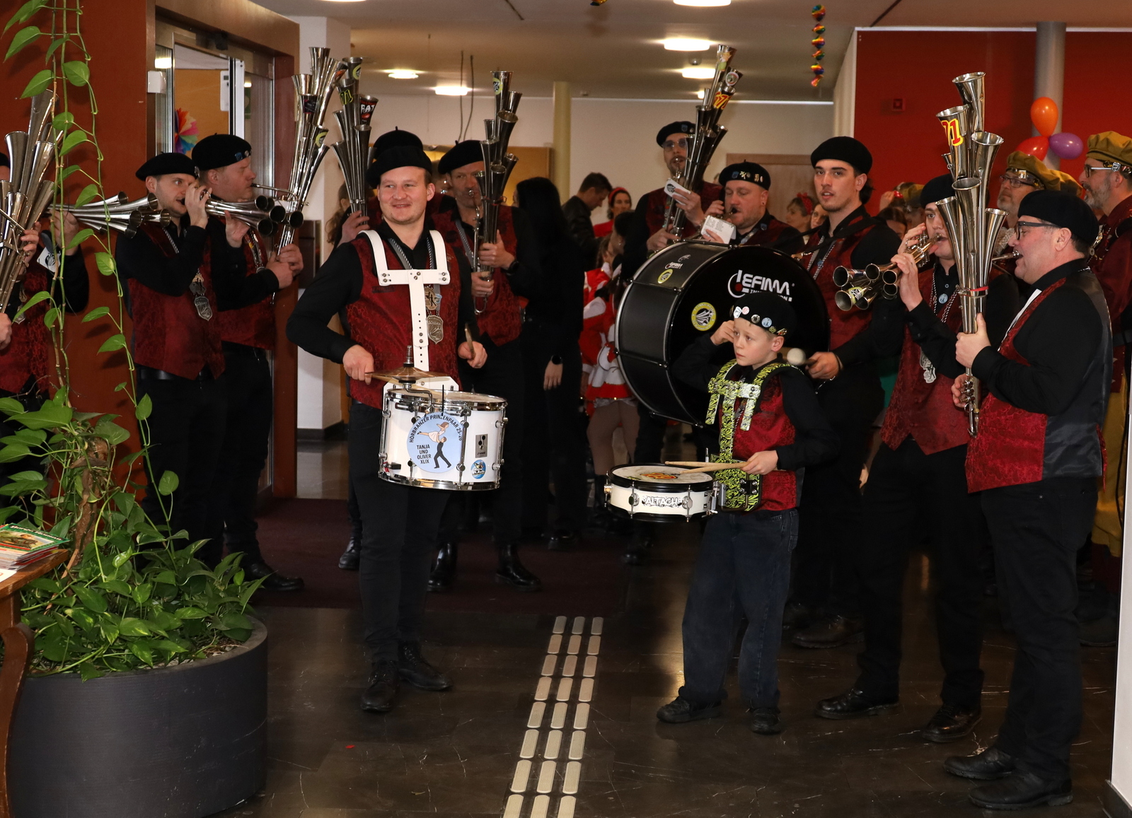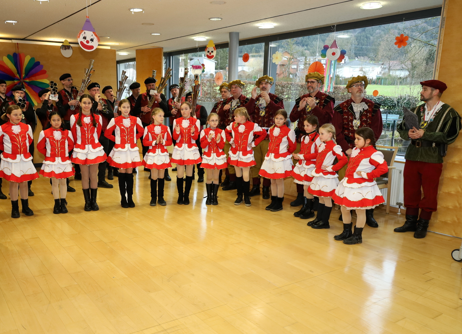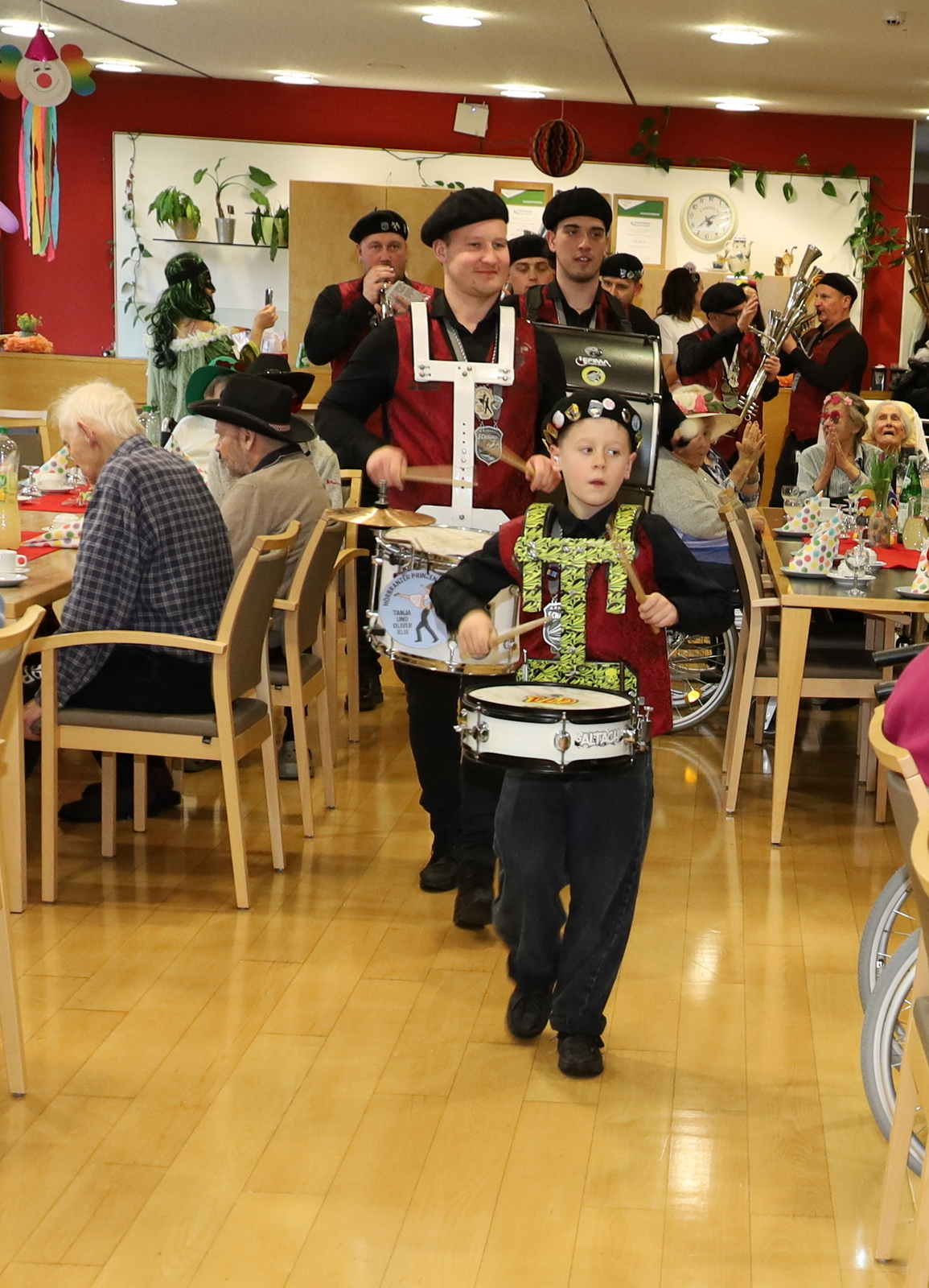 Für die große Hörbranzer Faschingsgilde ist der Besuch im Josefsheim längst ein fixer Termin im närrischen Kalender. Mit viel Herzblut und Engagement wurde auch heuer wieder gemeinsam gefeiert. Angeführt von Prinzessin Tanja, Prinz Oliver und Infantin Alisa zog die Gilde gemeinsam mit ihrem bestens gelaunten Gefolge ins Sozialzentrum ein. Begleitet wurden sie von den Hörbranzer Raubrittern, den Leiblachtaler Schalmeien sowie der Kindergarde Hörbranz – ein eindrucksvoller Einzug, der sofort für strahlende Gesichter sorgte.
