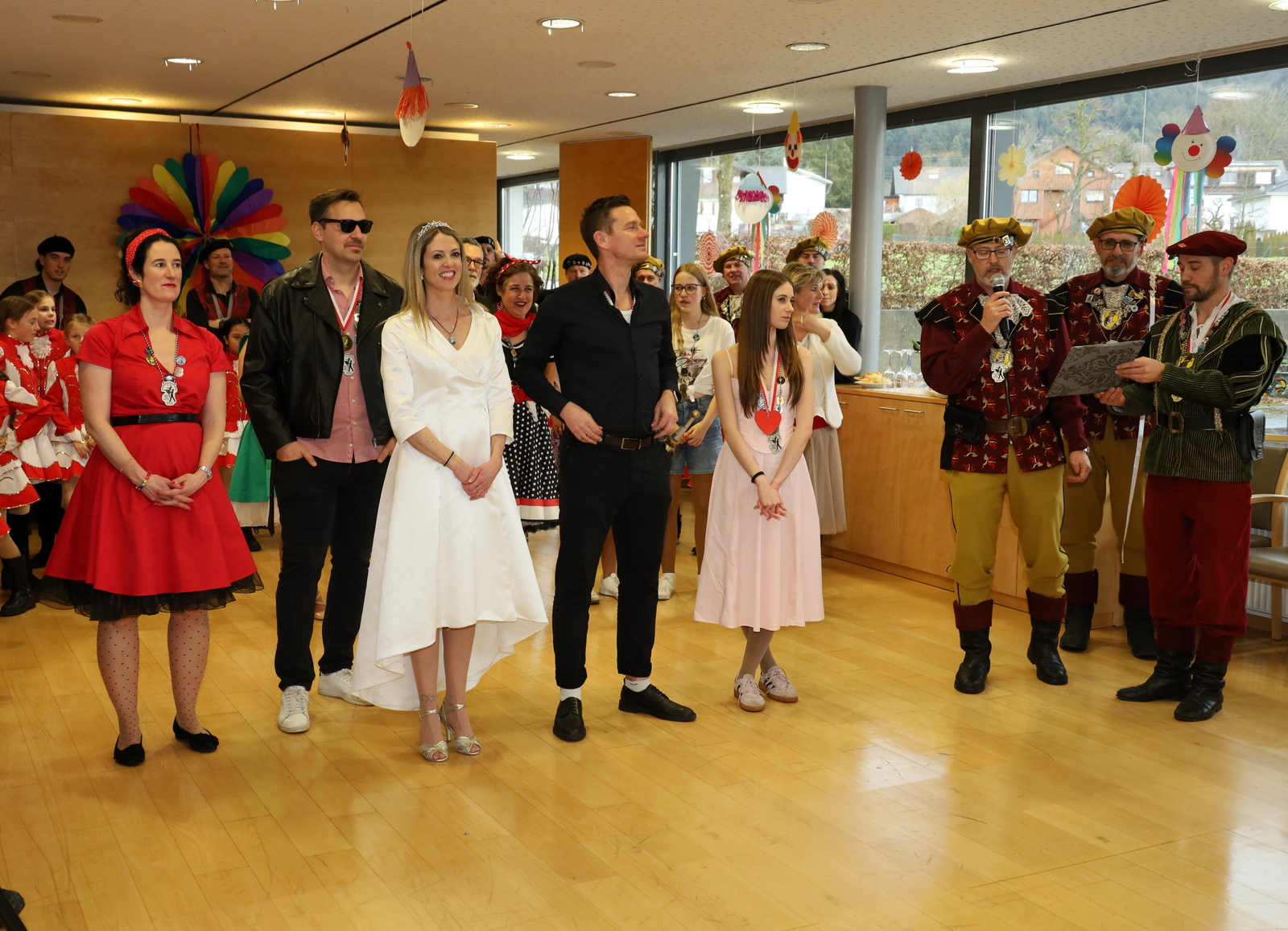 Ganz im Stil ihrer großen Auftritte präsentierte das Prinzenpaar seine Show und verlieh im Anschluss die begehrten Prinzenorden an ausgewählte Persönlichkeiten. Für die passende musikalische Umrahmung sorgten die Leiblachtaler Schalmeien, die mit ihren mitreißenden Klängen echtes Faschingsgefühl ins Haus brachten. Ein weiterer Höhepunkt war der Auftritt der Kindergarde Hörbranz, die mit ihrem Tanz das Publikum begeisterte und mit langanhaltendem Applaus belohnt wurde.