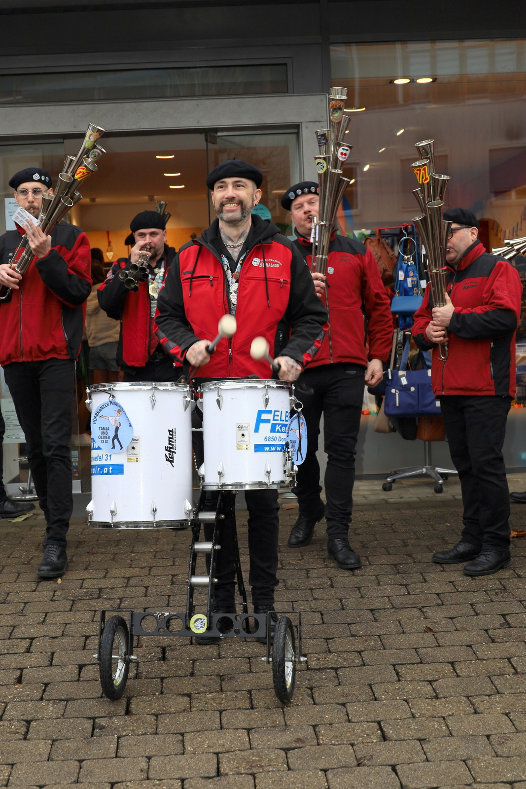 Bereits in den frühen Morgenstunden des Gumpigen Donnerstags machten sich die Leiblachtaler Schalmeien traditionell auf den Weg durch Hörbranz, um ihre Unterstützer mit einer musikalischen Dankestour zu überraschen. Mit ihren kraftvollen Klängen überbrachten die Ausnahmemusiker Glückwünsche und ein herzliches Dankeschön an all jene, die den Fasching im Ort tatkräftig fördern.