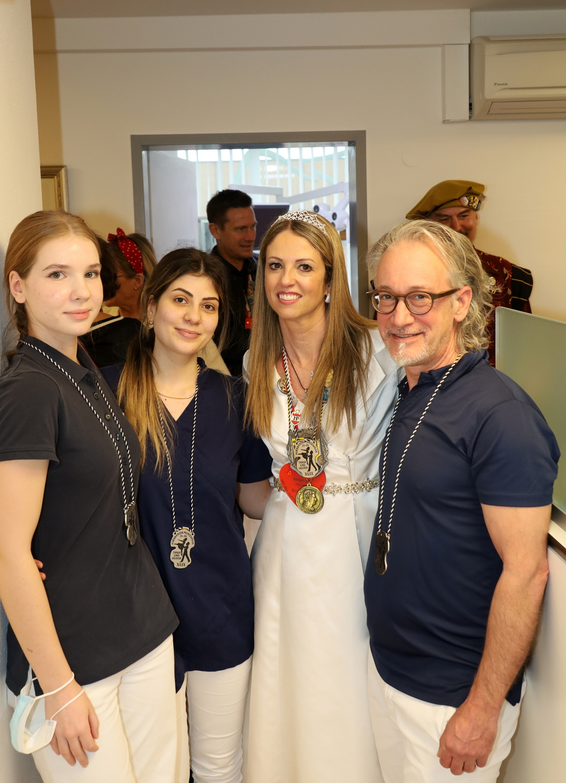 Vor dem gemeinsamen Mittagessen im Gasthaus Krone stand noch ein ungewöhnlicher Programmpunkt an: der Besuch bei Zahnarzt Dr. Krewinkel. An diesem Tag blieb jedoch jeder Behandlungsstuhl leer – stattdessen erfüllten Musik und Gelächter die Ordination, die zugleich der Arbeitsplatz von Prinzessin Tanja ist.
