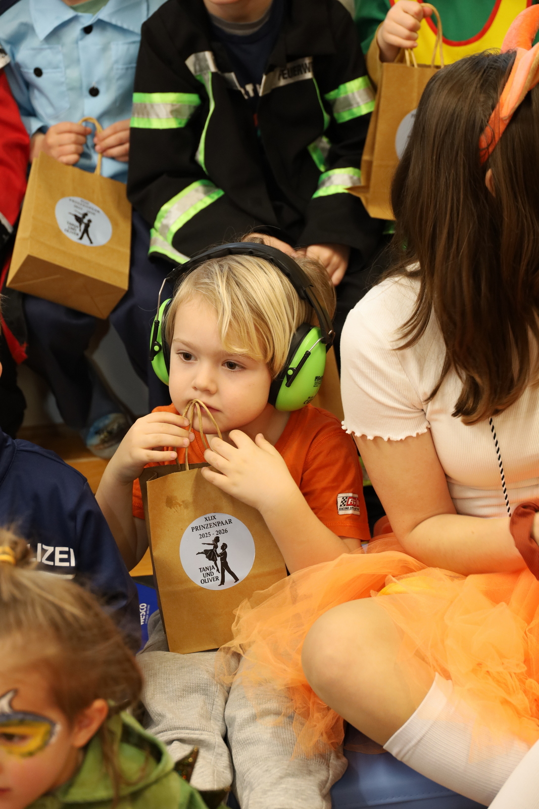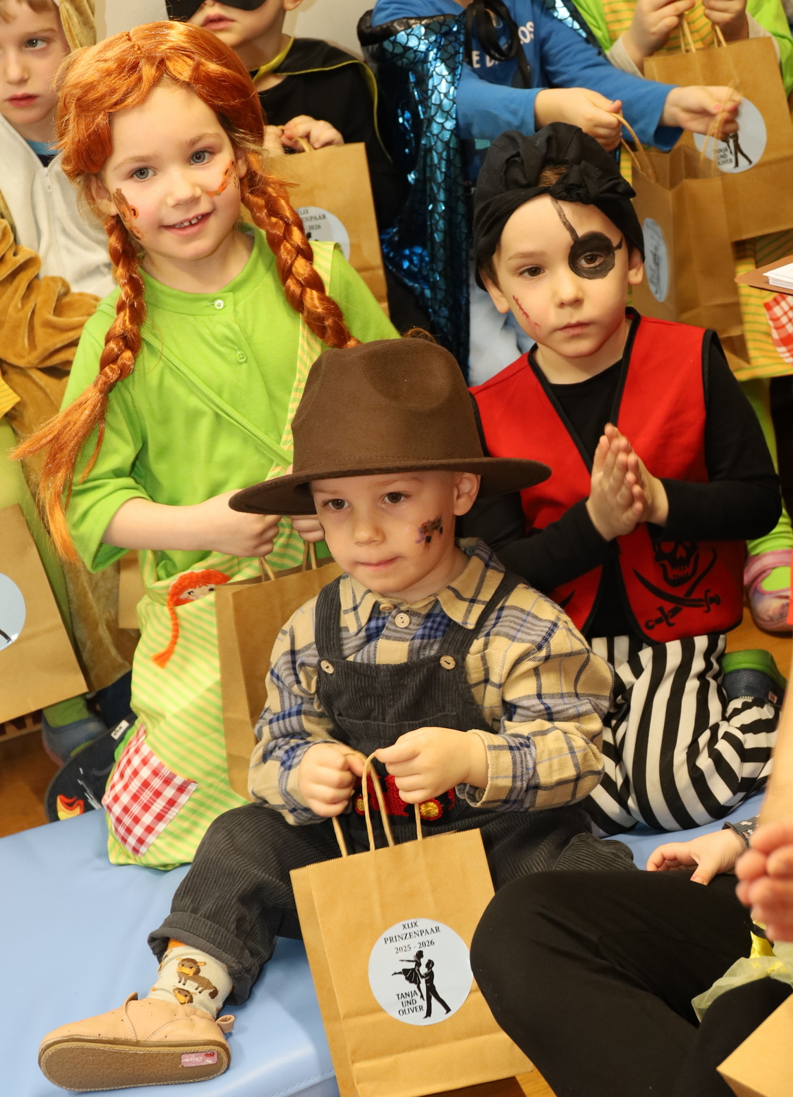Die Kinder hatten ihrerseits Lieder und kleine Tänze vorbereitet, die sie stolz dem Prinzenpaar präsentierten. Als Dankeschön wurden den Kindergärten, den Kinderbetreuungsgruppen und der Lebenshilfe die prinzlichen Orden verliehen. Auch die jungen Mäschgerle erhielten ein kleines Andenken an den Besuch.