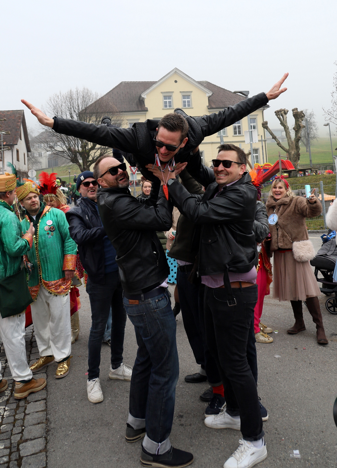 Nach dem offiziellen Umzug war das Faschingsfest noch lange nicht vorbei. Am Lochauer Dorfplatz wurde ausgelassen weitergefeiert, ehe sich viele Narren in die legendäre „Schalmeienhöll“ zurückzogen, wo bis in die Abendstunden hinein getanzt, gelacht und gefeiert wurde.