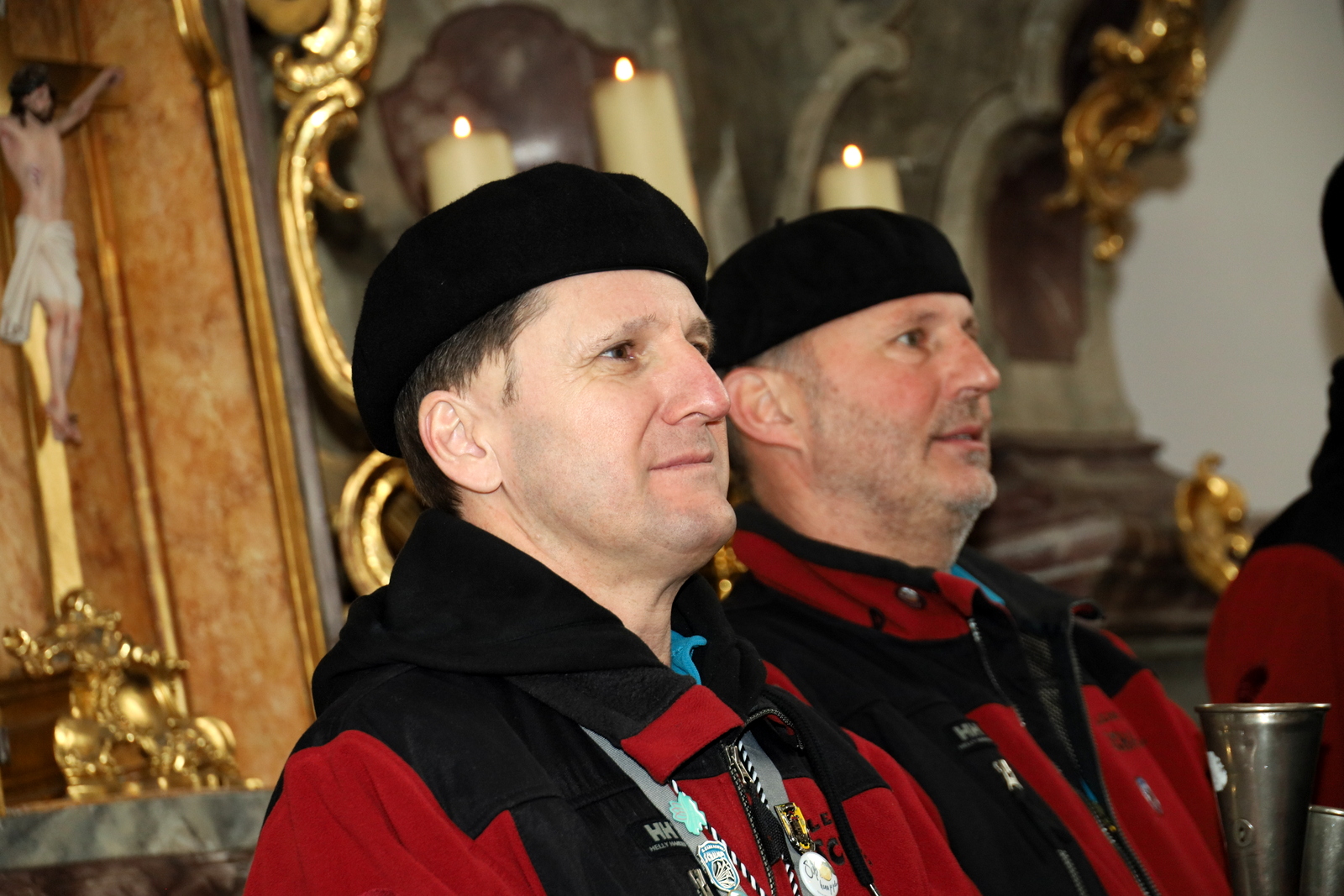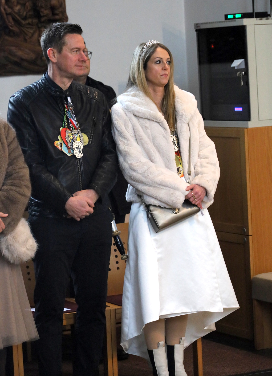 Auch das amtierende Prinzenpaar, Prinzessin Tanja und Prinz Oliver, war gemeinsam mit seinem wunderbaren Gefolge vertreten. Begleitet wurden sie von fast allen Hörbranzer Raubrittern, die dem Gottesdienst in voller Montur beiwohnten. So bot sich an diesem Sonntagvormittag ein außergewöhnliches Bild: närrische Gewänder zwischen Kirchenbänken und Schalmeienklänge unter dem Kirchendach.