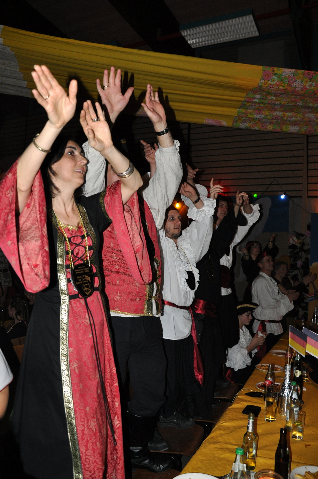Brusthaarrasierter Langesitzer bei allen geselligen Anlässen in seiner Grafschaft