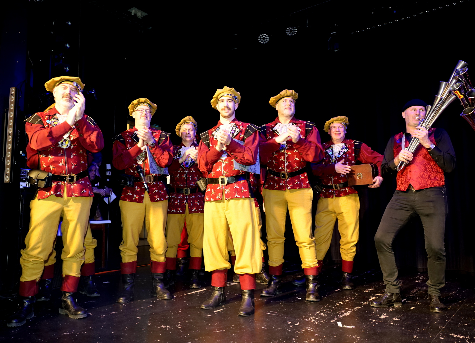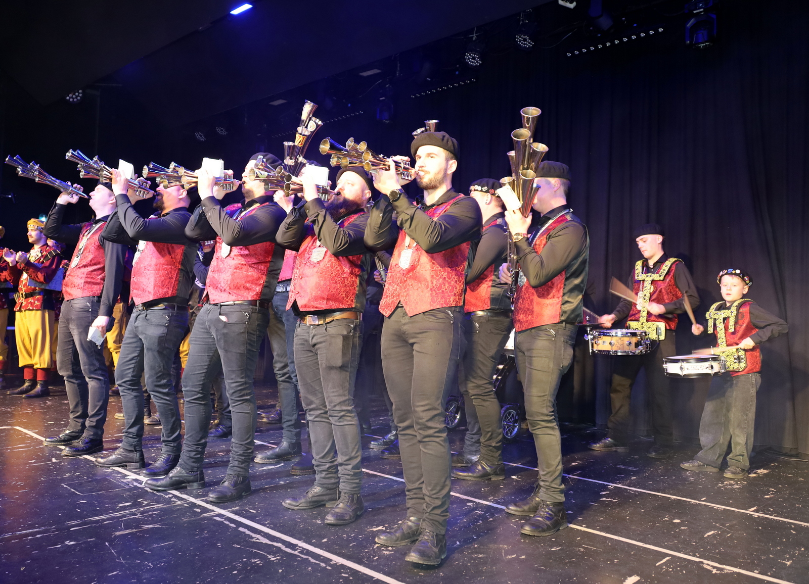 Ein weiterer Höhepunkt folgte mit dem Einzug der großen Faschingsgilde aus dem Leiblachtal. Angeführt von den Leiblachtaler Schalmeien zogen Prinzessin Tanja und Prinz Oliver gemeinsam mit den Infantinnen Alisa und Lena sowie ihrem bestens gelaunten Gefolge in den Festsaal ein. Standesgemäß eskortiert wurden sie von den Hörbranzer Raubrittern, der Ehrengarde des amtierenden Prinzenpaares. Nach der Prinzenpaarshow überreichten die Faschingsregenten ihre begehrten Orden an ausgewählte Persönlichkeiten und verlasen mit viel Humor die eigens verfassten „Ringergesetze“. Während ihres Auftritts verwandelten die Leiblachtaler Schalmeien den Saal in eine wahre Faschingshochburg und wurden dafür vom Publikum mit großem Applaus gefeiert.