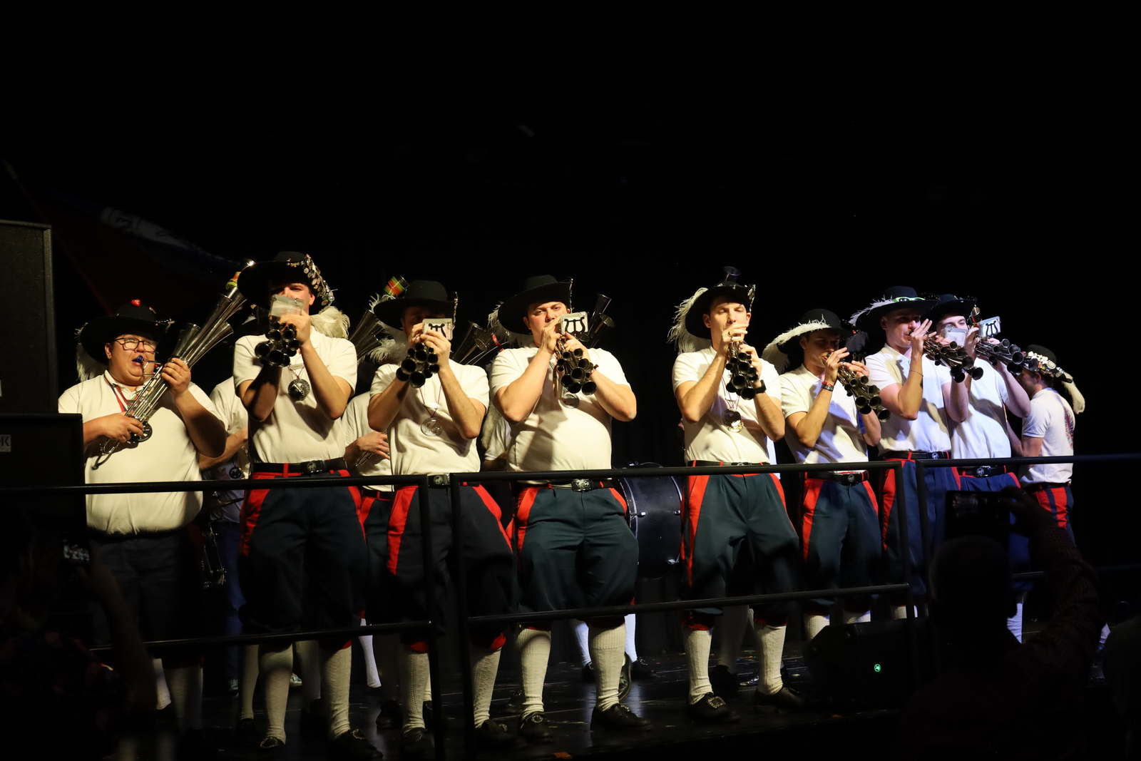 Ein weiterer Höhepunkt folgte mit dem Einzug der großen Faschingsgilde aus dem Leiblachtal. Angeführt von den Leiblachtaler Schalmeien zogen Prinzessin Tanja und Prinz Oliver gemeinsam mit den Infantinnen Alisa und Lena sowie ihrem bestens gelaunten Gefolge in den Festsaal ein. Standesgemäß eskortiert wurden sie von den Hörbranzer Raubrittern, der Ehrengarde des amtierenden Prinzenpaares. Nach der Prinzenpaarshow überreichten die Faschingsregenten ihre begehrten Orden an ausgewählte Persönlichkeiten und verlasen mit viel Humor die eigens verfassten „Ringergesetze“. Während ihres Auftritts verwandelten die Leiblachtaler Schalmeien den Saal in eine wahre Faschingshochburg und wurden dafür vom Publikum mit großem Applaus gefeiert.