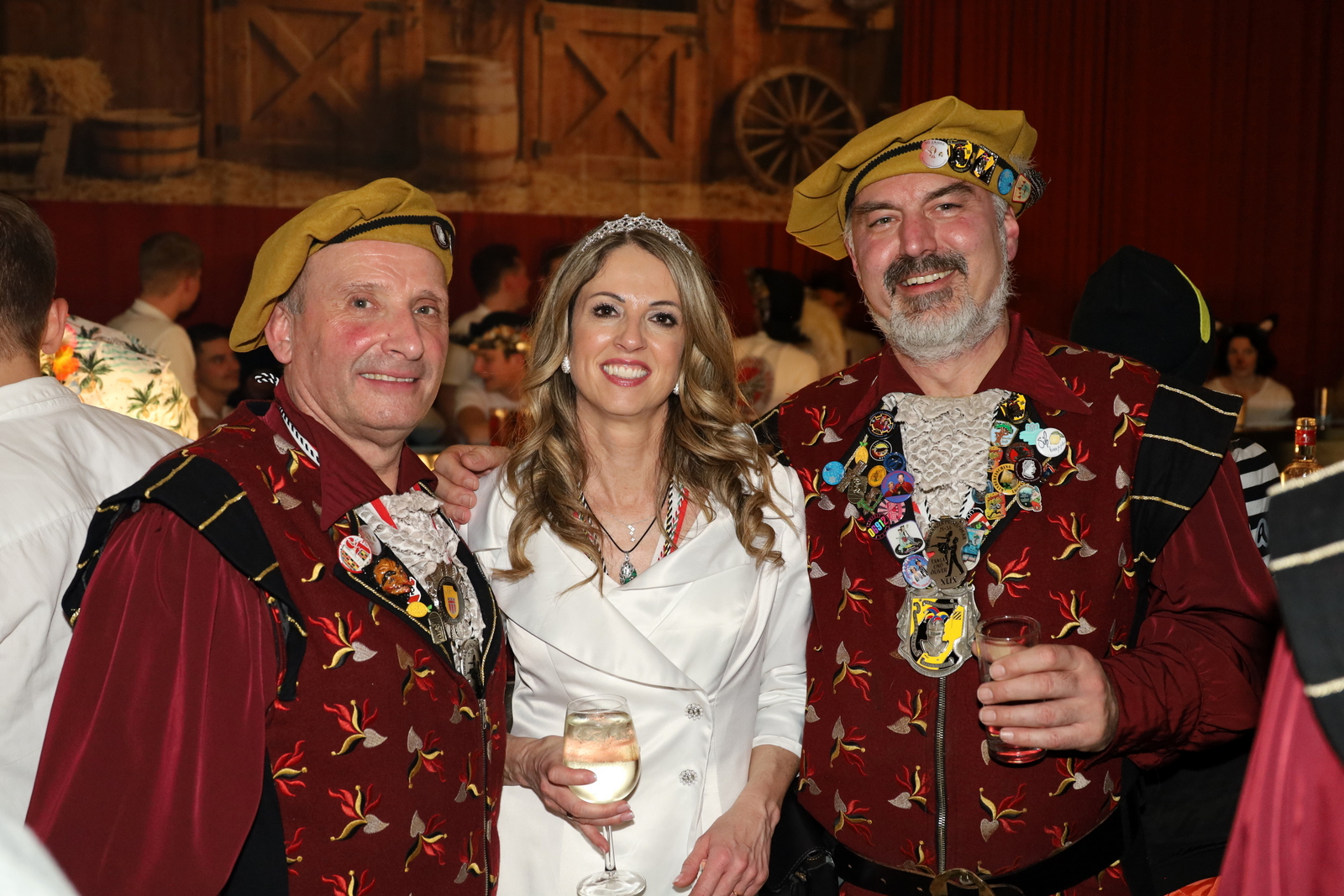Ein weiterer Höhepunkt folgte mit dem Einzug der großen Faschingsgilde aus dem Leiblachtal. Angeführt von den Leiblachtaler Schalmeien zogen Prinzessin Tanja und Prinz Oliver gemeinsam mit den Infantinnen Alisa und Lena sowie ihrem bestens gelaunten Gefolge in den Festsaal ein. Standesgemäß eskortiert wurden sie von den Hörbranzer Raubrittern, der Ehrengarde des amtierenden Prinzenpaares. Nach der Prinzenpaarshow überreichten die Faschingsregenten ihre begehrten Orden an ausgewählte Persönlichkeiten und verlasen mit viel Humor die eigens verfassten „Ringergesetze“. Während ihres Auftritts verwandelten die Leiblachtaler Schalmeien den Saal in eine wahre Faschingshochburg und wurden dafür vom Publikum mit großem Applaus gefeiert.